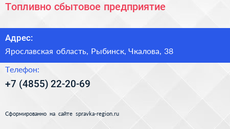 Топливно-сбытовое предприятие по адресу Ярославская область, Рыбинск, Чкалова, 38 в дальнейшем Организация, размещена в следующих категориях: