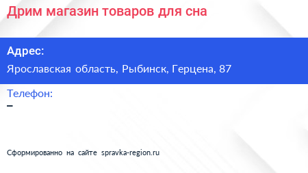 Дрим, магазин товаров для сна по адресу Ярославская область, Рыбинск, Герцена, 87 в дальнейшем Организация, размещена в следующих категориях: