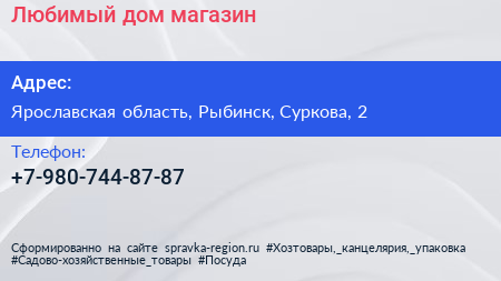 Любимый дом, магазин по адресу Ярославская область, Рыбинск, Суркова, 2 в дальнейшем Организация, размещена в следующих категориях: