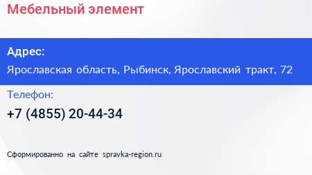 Мебельный элемент по адресу Ярославская область, Рыбинск, Ярославский тракт, 72 в дальнейшем Организация, размещена в следующих категориях: