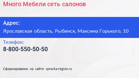 Много Мебели, сеть салонов по адресу Ярославская область, Рыбинск, Максима Горького, 10 в дальнейшем Организация, размещена в следующих категориях: