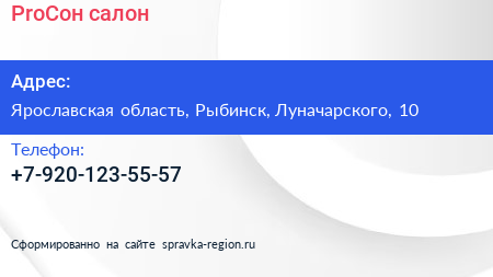 ProСон, салон по адресу Ярославская область, Рыбинск, Луначарского, 10 в дальнейшем Организация, размещена в следующих категориях: