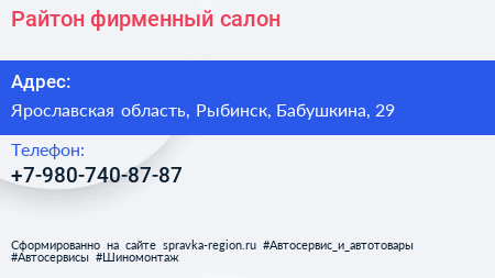 Райтон, фирменный салон по адресу Ярославская область, Рыбинск, Бабушкина, 29 в дальнейшем Организация, размещена в следующих категориях:
