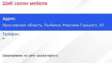 ШиК, салон мебели по адресу Ярославская область, Рыбинск, Максима Горького, 10 в дальнейшем Организация, размещена в следующих категориях: