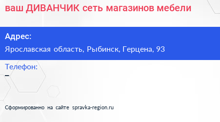 ваш ДИВАНЧИК, сеть магазинов мебели по адресу Ярославская область, Рыбинск, Герцена, 93 в дальнейшем Организация, размещена в следующих категориях: