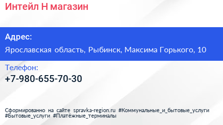 Интейл-Н, магазин по адресу Ярославская область, Рыбинск, Максима Горького, 10 в дальнейшем Организация, размещена в следующих категориях: