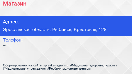 Магазин по адресу Ярославская область, Рыбинск, Крестовая, 128 в дальнейшем Организация, размещена в следующих категориях: