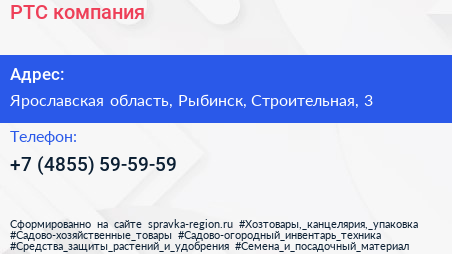 РТС, компания по адресу Ярославская область, Рыбинск, Строительная, 3 в дальнейшем Организация, размещена в следующих категориях: