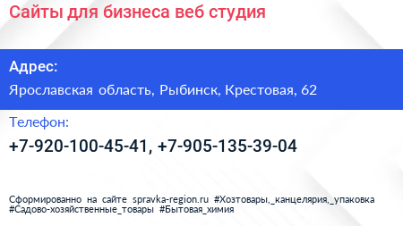 Сайты для бизнеса, веб-студия по адресу Ярославская область, Рыбинск, Крестовая, 62 в дальнейшем Организация, размещена в следующих категориях: