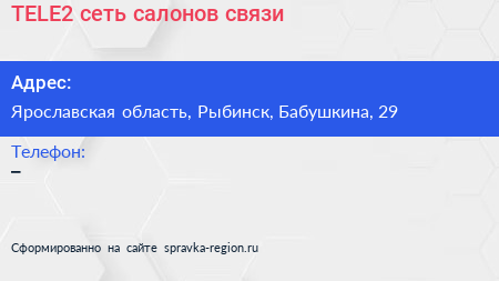TELE2, сеть салонов связи по адресу Ярославская область, Рыбинск, Бабушкина, 29 в дальнейшем Организация, размещена в следующих категориях: