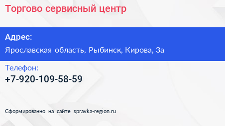 Торгово-сервисный центр по адресу Ярославская область, Рыбинск, Кирова, 3а в дальнейшем Организация, размещена в следующих категориях: