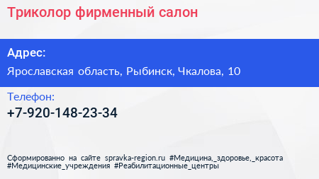 Триколор, фирменный салон по адресу Ярославская область, Рыбинск, Чкалова, 10 в дальнейшем Организация, размещена в следующих категориях: