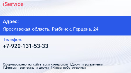 iService по адресу Ярославская область, Рыбинск, Герцена, 24 в дальнейшем Организация, размещена в следующих категориях: