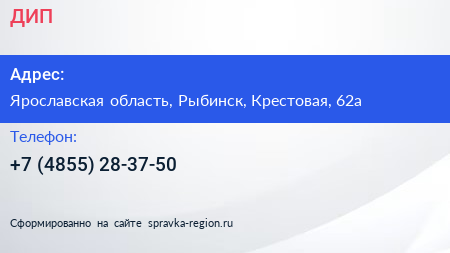 ДИП по адресу Ярославская область, Рыбинск, Крестовая, 62а в дальнейшем Организация, размещена в следующих категориях: