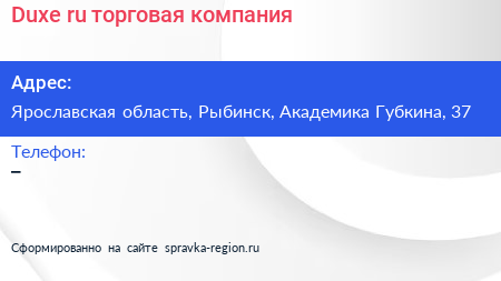 Duxe.ru, торговая компания по адресу Ярославская область, Рыбинск, Академика Губкина, 37 в дальнейшем Организация, размещена в следующих категориях: