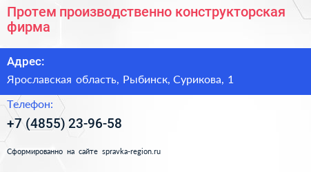 Протем, производственно-конструкторская фирма по адресу Ярославская область, Рыбинск, Сурикова, 1 в дальнейшем Организация, размещена в следующих категориях: