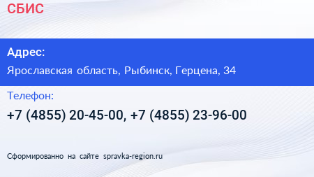 СБИС по адресу Ярославская область, Рыбинск, Герцена, 34 в дальнейшем Организация, размещена в следующих категориях:
