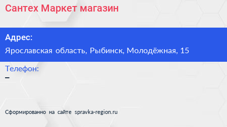 Сантех Маркет, магазин по адресу Ярославская область, Рыбинск, Молодёжная, 15 в дальнейшем Организация, размещена в следующих категориях:
