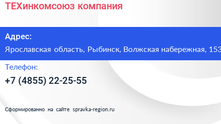 ТЕХинкомсоюз, компания по адресу Ярославская область, Рыбинск, Волжская набережная, 153 в дальнейшем Организация, размещена в следующих категориях: