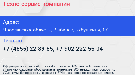 Техно-сервис, компания по адресу Ярославская область, Рыбинск, Бабушкина, 17 в дальнейшем Организация, размещена в следующих категориях: