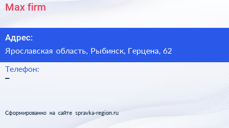 Max firm по адресу Ярославская область, Рыбинск, Герцена, 62 в дальнейшем Организация, размещена в следующих категориях: