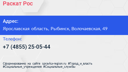 Раскат-Рос по адресу Ярославская область, Рыбинск, Волочаевская, 49 в дальнейшем Организация, размещена в следующих категориях: