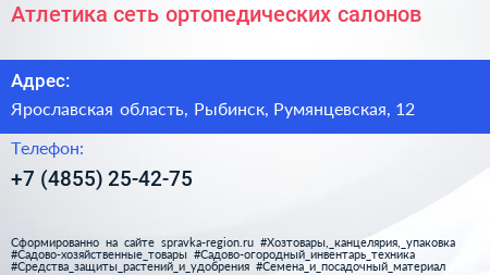Атлетика, сеть ортопедических салонов по адресу Ярославская область, Рыбинск, Румянцевская, 12 в дальнейшем Организация, размещена в следующих категориях: