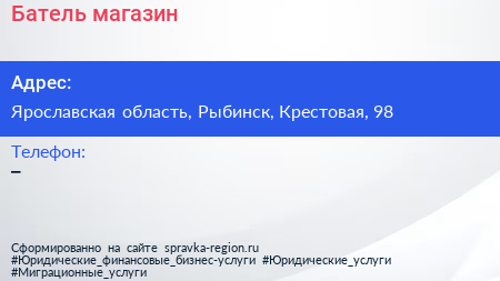 Батель, магазин по адресу Ярославская область, Рыбинск, Крестовая, 98 в дальнейшем Организация, размещена в следующих категориях: