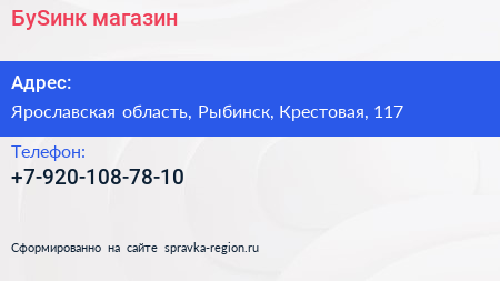 БуSинк@, магазин по адресу Ярославская область, Рыбинск, Крестовая, 117 в дальнейшем Организация, размещена в следующих категориях: