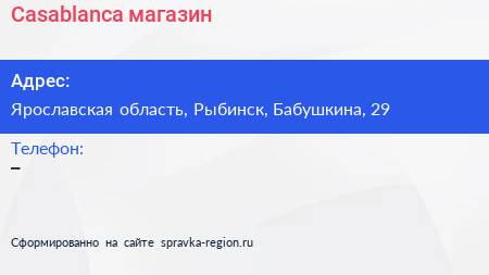 Casablanca, магазин по адресу Ярославская область, Рыбинск, Бабушкина, 29 в дальнейшем Организация, размещена в следующих категориях: