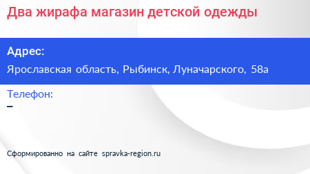 Два жирафа, магазин детской одежды по адресу Ярославская область, Рыбинск, Луначарского, 58а в дальнейшем Организация, размещена в следующих категориях: