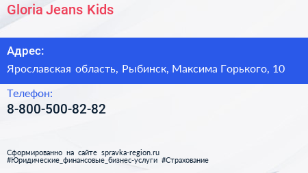 Gloria Jeans Kids по адресу Ярославская область, Рыбинск, Максима Горького, 10 в дальнейшем Организация, размещена в следующих категориях: