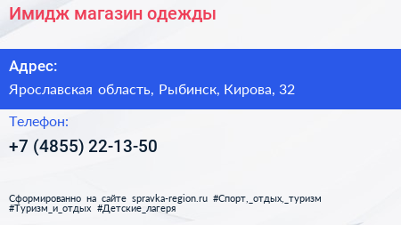 Имидж, магазин одежды по адресу Ярославская область, Рыбинск, Кирова, 32 в дальнейшем Организация, размещена в следующих категориях: