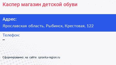 Каспер, магазин детской обуви по адресу Ярославская область, Рыбинск, Крестовая, 122 в дальнейшем Организация, размещена в следующих категориях: