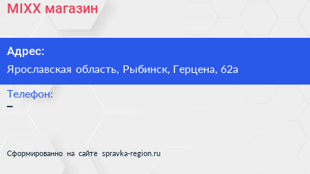 MIXX, магазин по адресу Ярославская область, Рыбинск, Герцена, 62а в дальнейшем Организация, размещена в следующих категориях:
