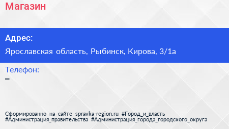 Магазин по адресу Ярославская область, Рыбинск, Кирова, 3/1а в дальнейшем Организация, размещена в следующих категориях: