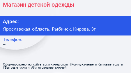Магазин детской одежды по адресу Ярославская область, Рыбинск, Кирова, 3г в дальнейшем Организация, размещена в следующих категориях: