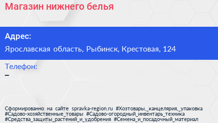 Магазин нижнего белья по адресу Ярославская область, Рыбинск, Крестовая, 124 в дальнейшем Организация, размещена в следующих категориях: