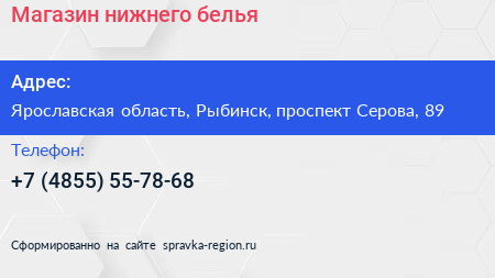 Магазин нижнего белья по адресу Ярославская область, Рыбинск, проспект Серова, 89 в дальнейшем Организация, размещена в следующих категориях:
