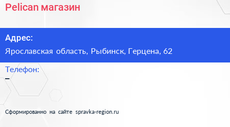 Pelican, магазин по адресу Ярославская область, Рыбинск, Герцена, 62 в дальнейшем Организация, размещена в следующих категориях: