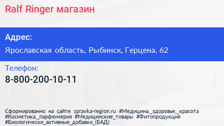 Ralf Ringer, магазин по адресу Ярославская область, Рыбинск, Герцена, 62 в дальнейшем Организация, размещена в следующих категориях: