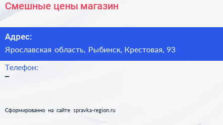 Смешные цены, магазин по адресу Ярославская область, Рыбинск, Крестовая, 93 в дальнейшем Организация, размещена в следующих категориях: