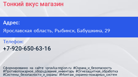 Тонкий вкус, магазин по адресу Ярославская область, Рыбинск, Бабушкина, 29 в дальнейшем Организация, размещена в следующих категориях:
