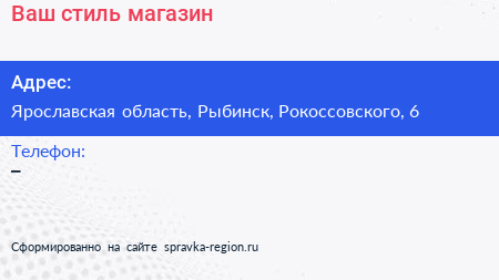 Ваш стиль, магазин по адресу Ярославская область, Рыбинск, Рокоссовского, 6 в дальнейшем Организация, размещена в следующих категориях: