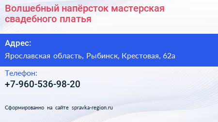 Волшебный напёрсток, мастерская свадебного платья по адресу Ярославская область, Рыбинск, Крестовая, 62а в дальнейшем Организация, размещена в следующих категориях: