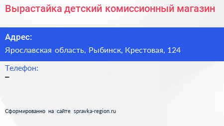 Вырастайка, детский комиссионный магазин по адресу Ярославская область, Рыбинск, Крестовая, 124 в дальнейшем Организация, размещена в следующих категориях:
