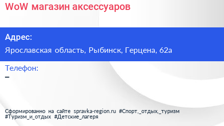 WoW, магазин аксессуаров по адресу Ярославская область, Рыбинск, Герцена, 62а в дальнейшем Организация, размещена в следующих категориях: