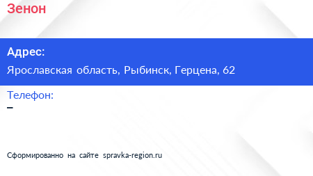 Зенон по адресу Ярославская область, Рыбинск, Герцена, 62 в дальнейшем Организация, размещена в следующих категориях: