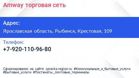 Amway, торговая сеть по адресу Ярославская область, Рыбинск, Крестовая, 109 в дальнейшем Организация, размещена в следующих категориях: