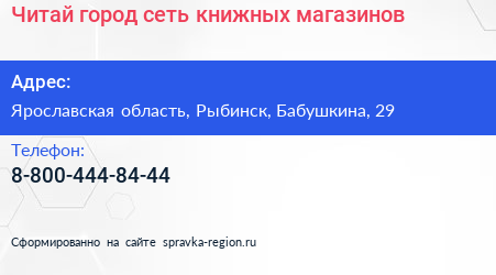 Читай-город, сеть книжных магазинов по адресу Ярославская область, Рыбинск, Бабушкина, 29 в дальнейшем Организация, размещена в следующих категориях: